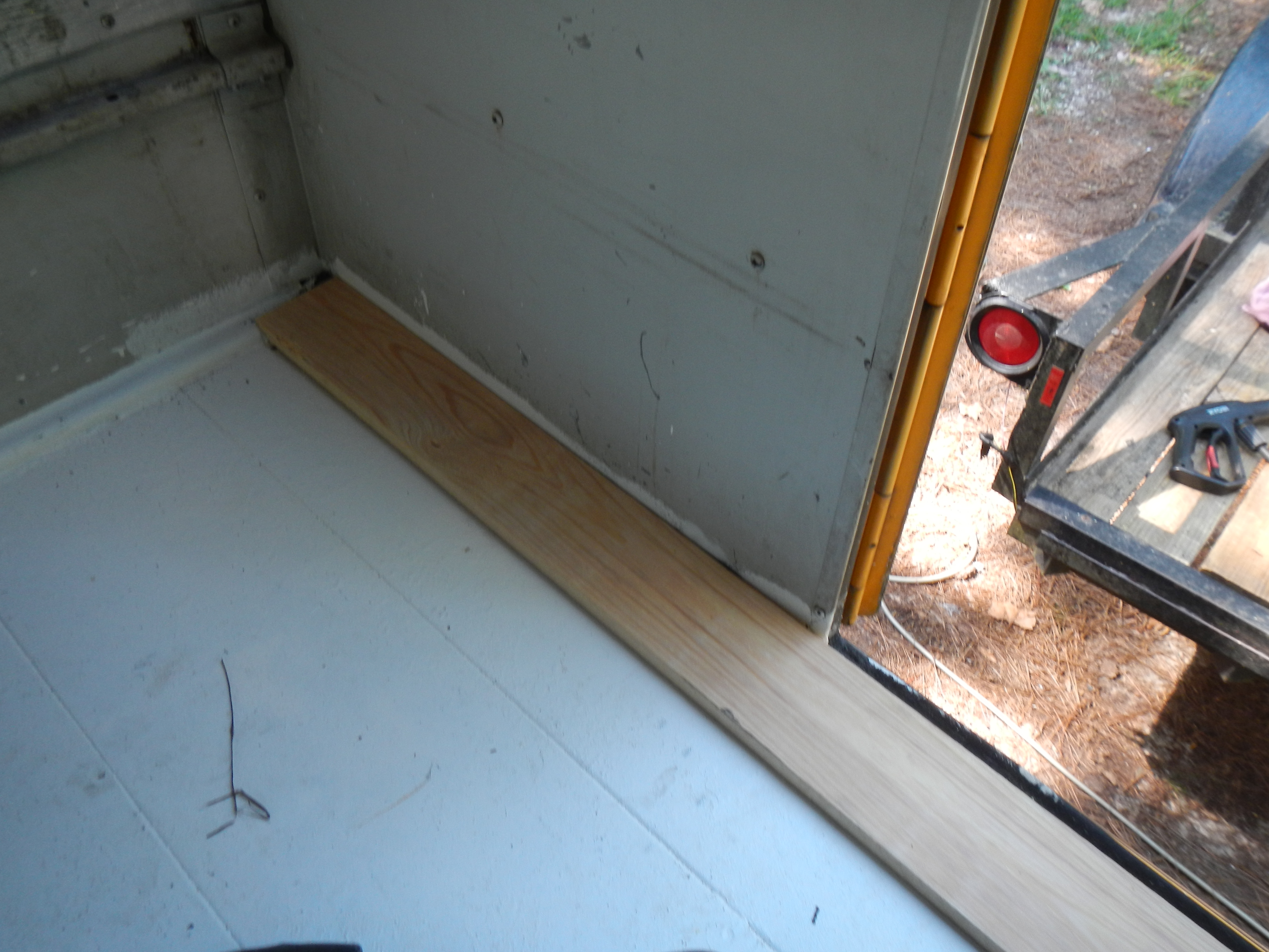 The edges of the 1x4 are routed out so it fits as snugly as possible against the wall and provides uniform support for the plywood floor, which is otherwise attached only at the sides and floats almost entirely on the foamboard subfloor.