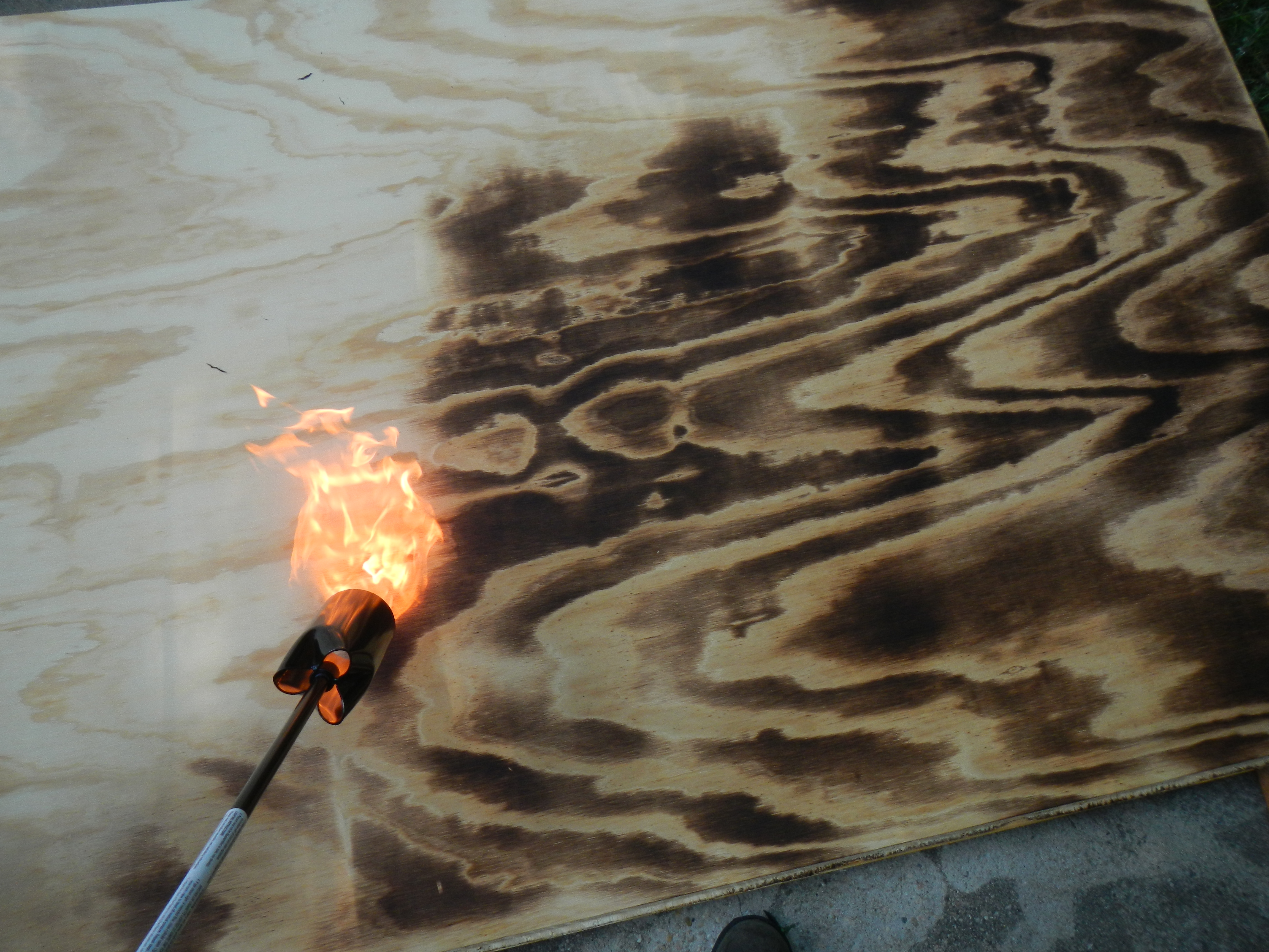 I’m using a propane blowtorch to burn the wood. Doesn’t take long- just a few quick passes.