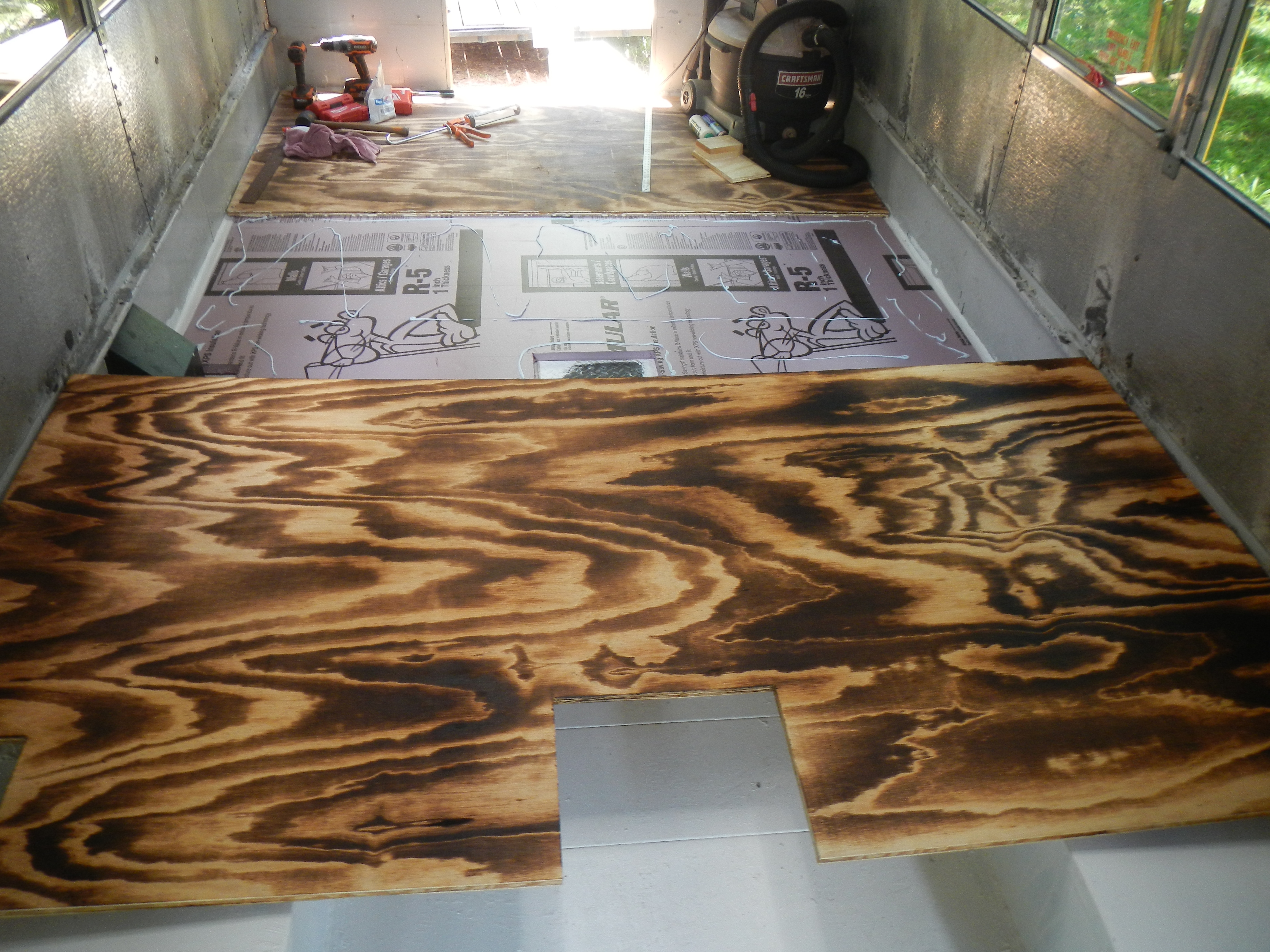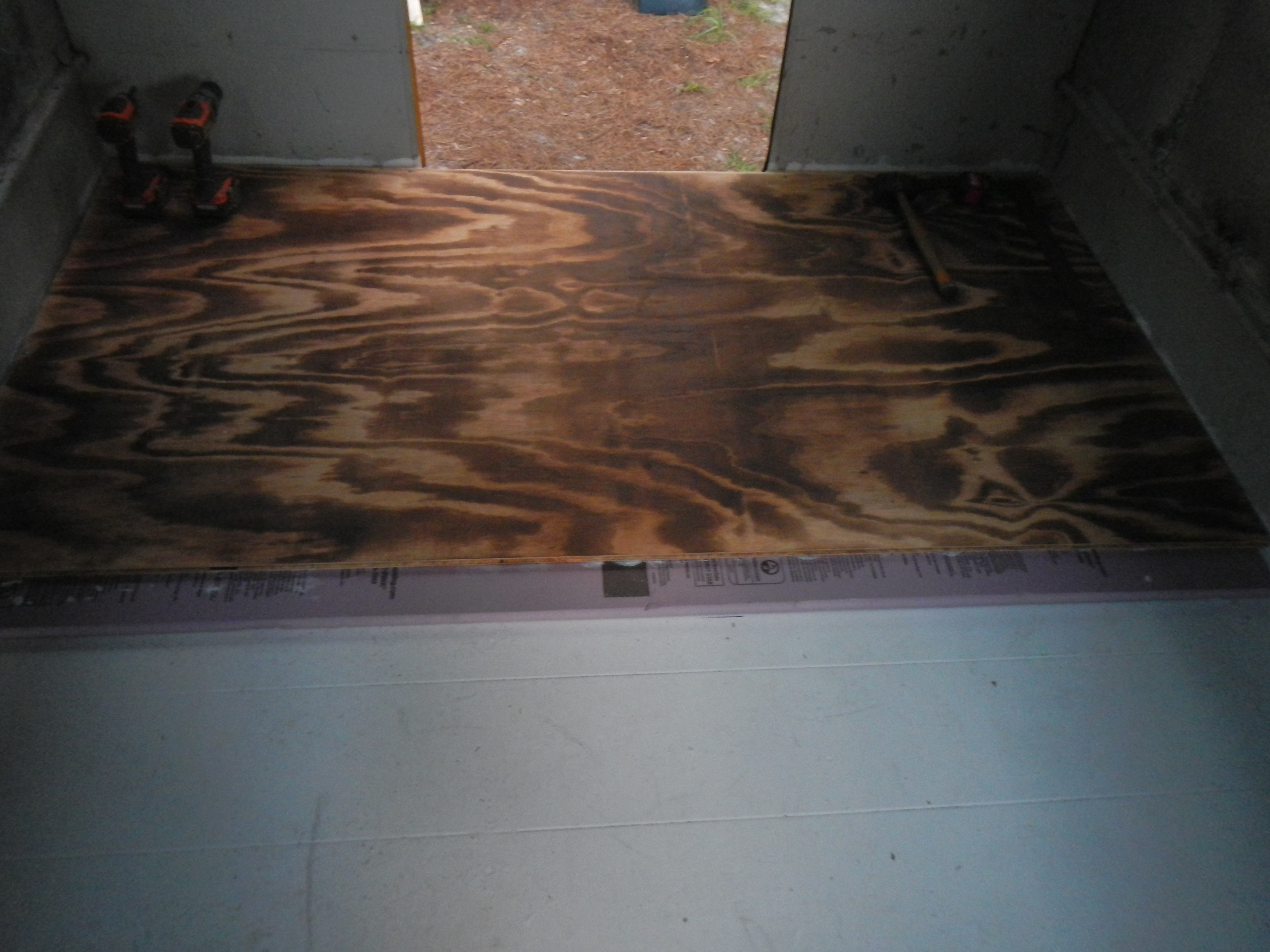 I’ve spent the last few days wrestling sheets of 3/4" plywood, cutting foamboard and playing with fire, all to get the floor installed.