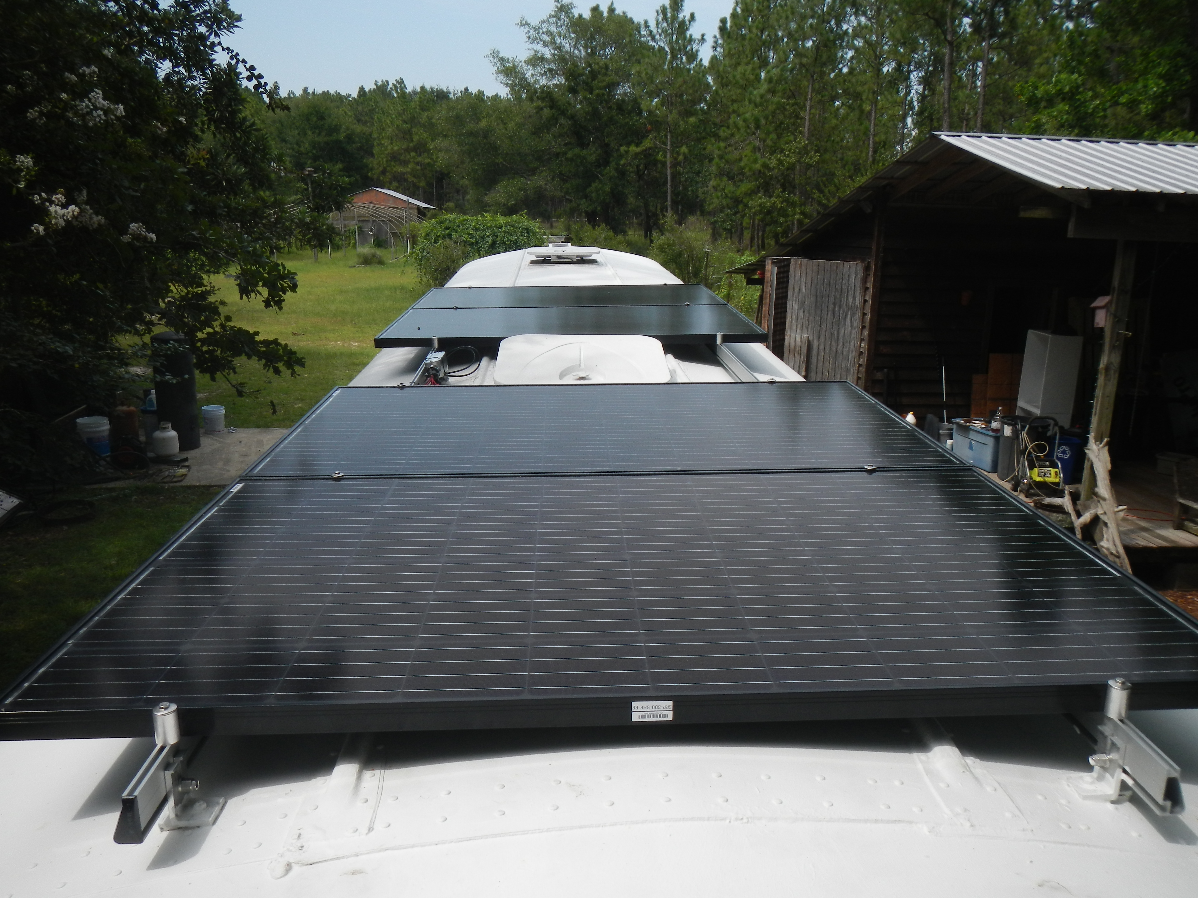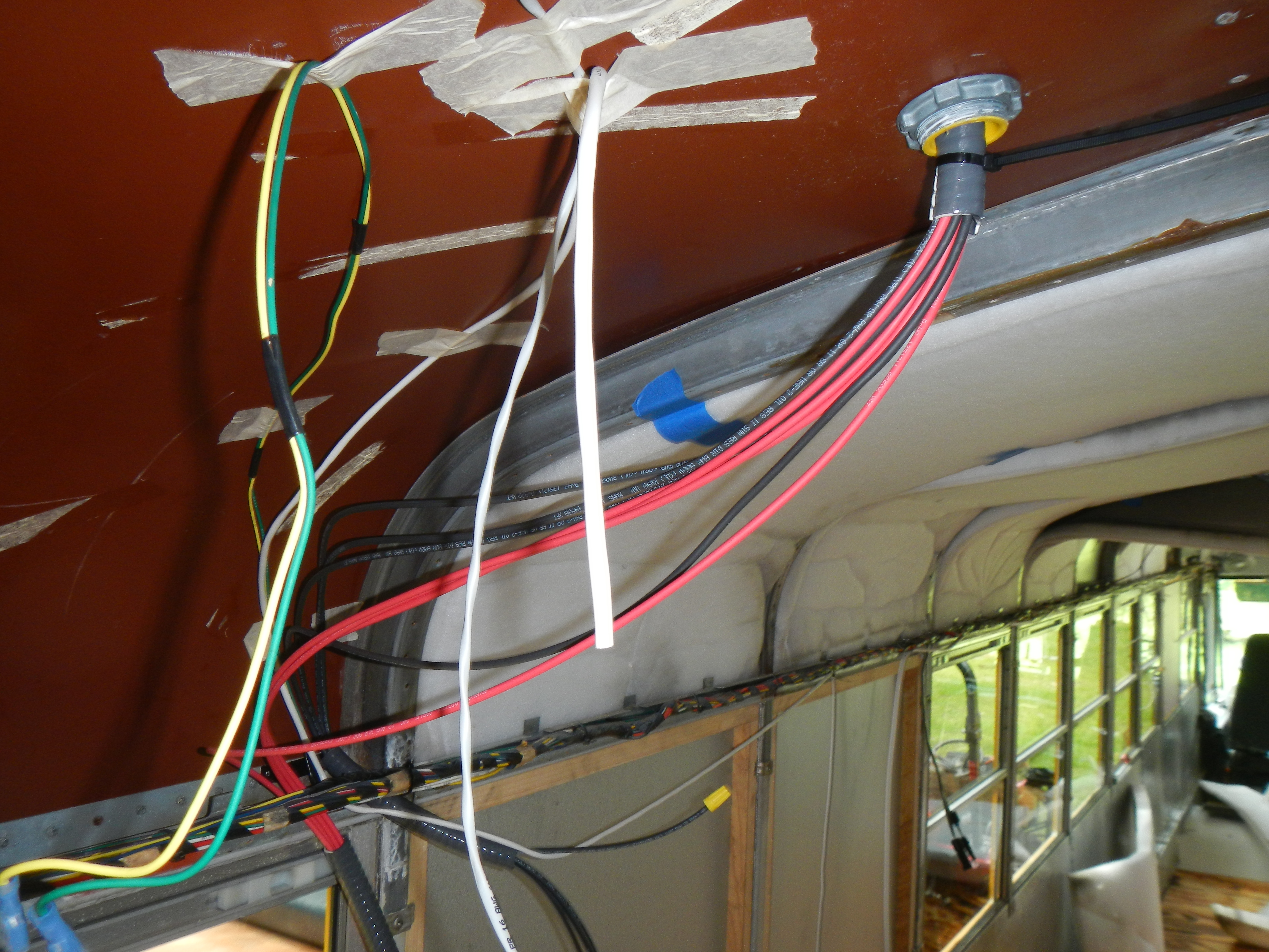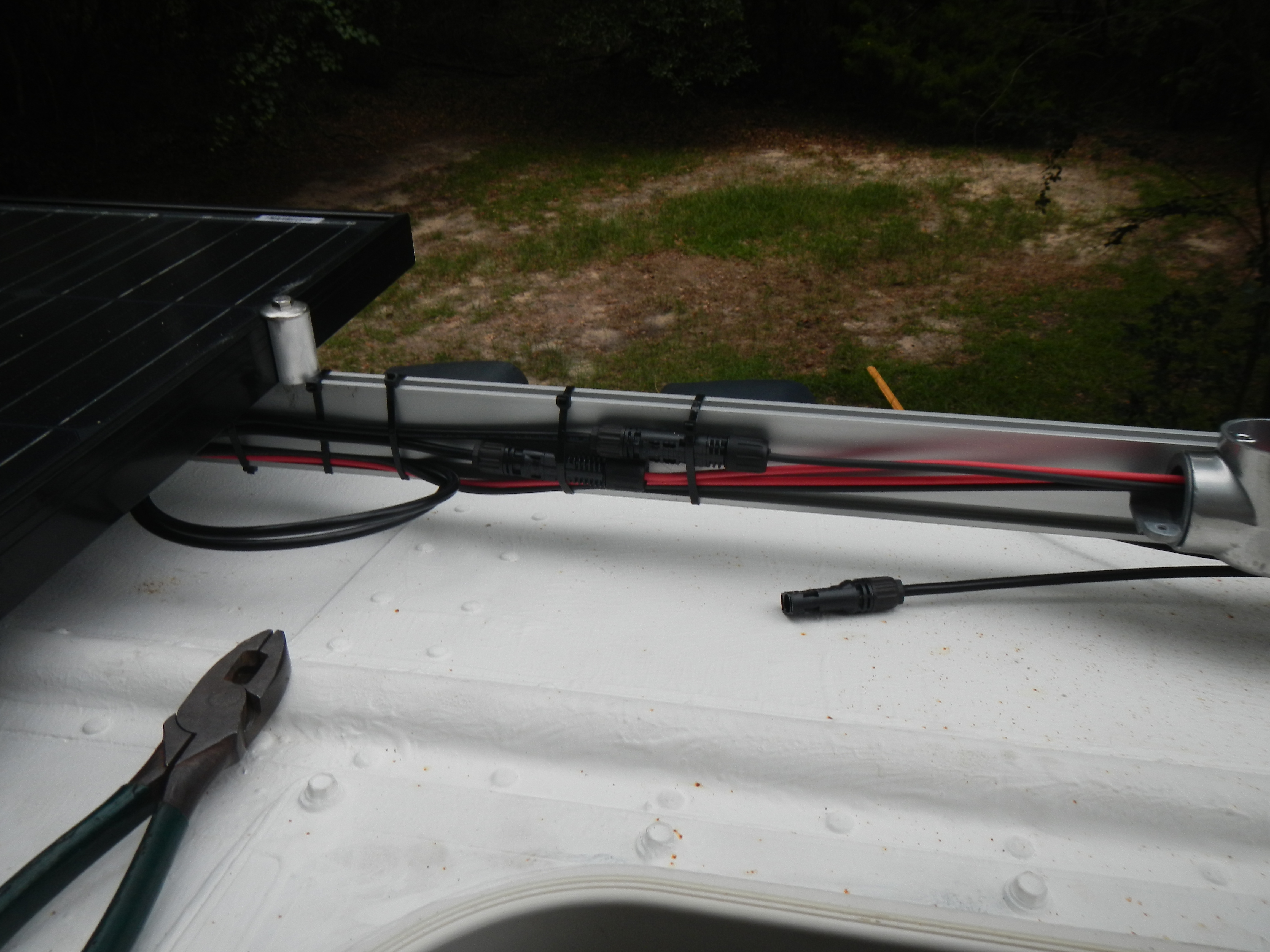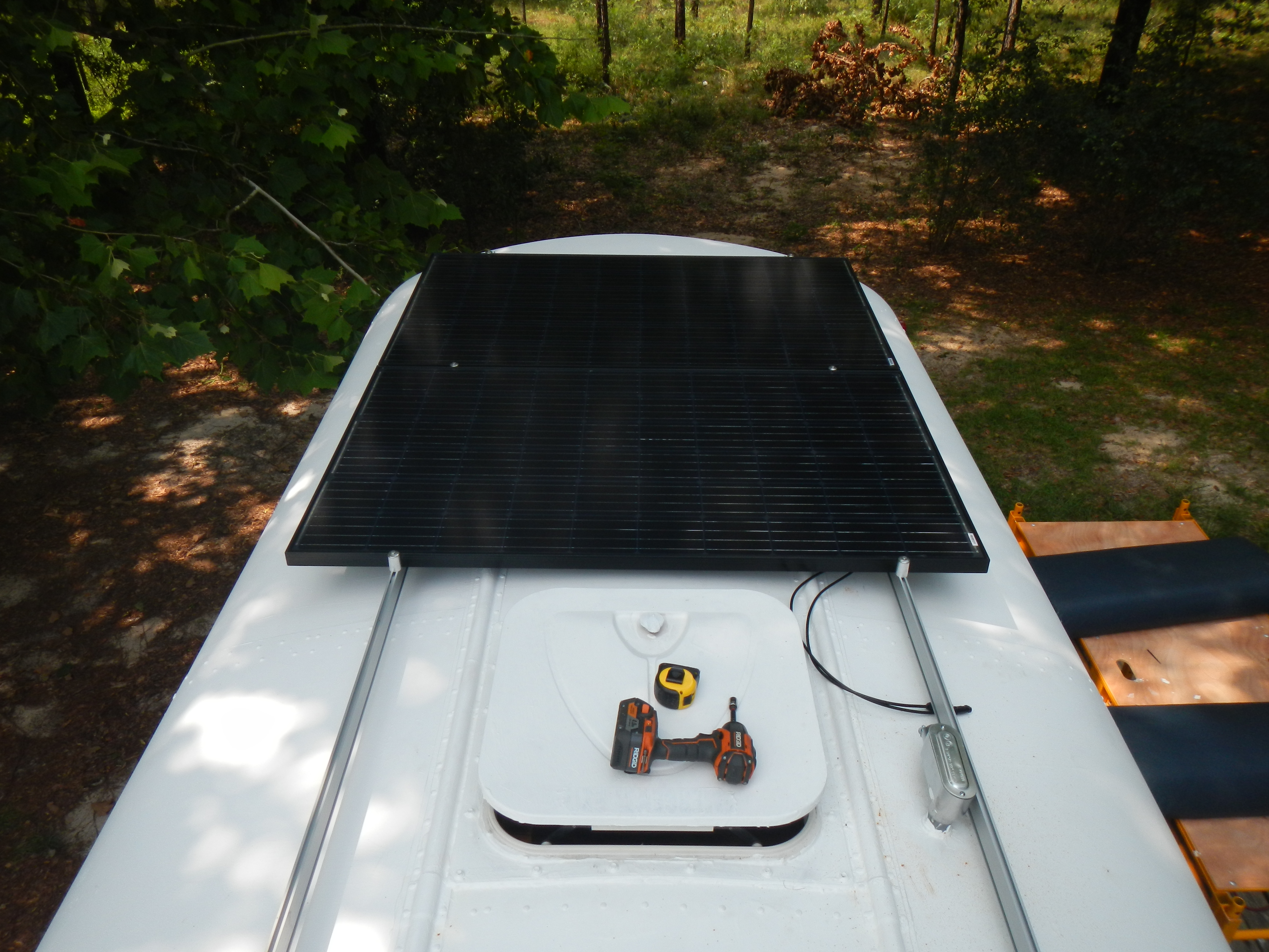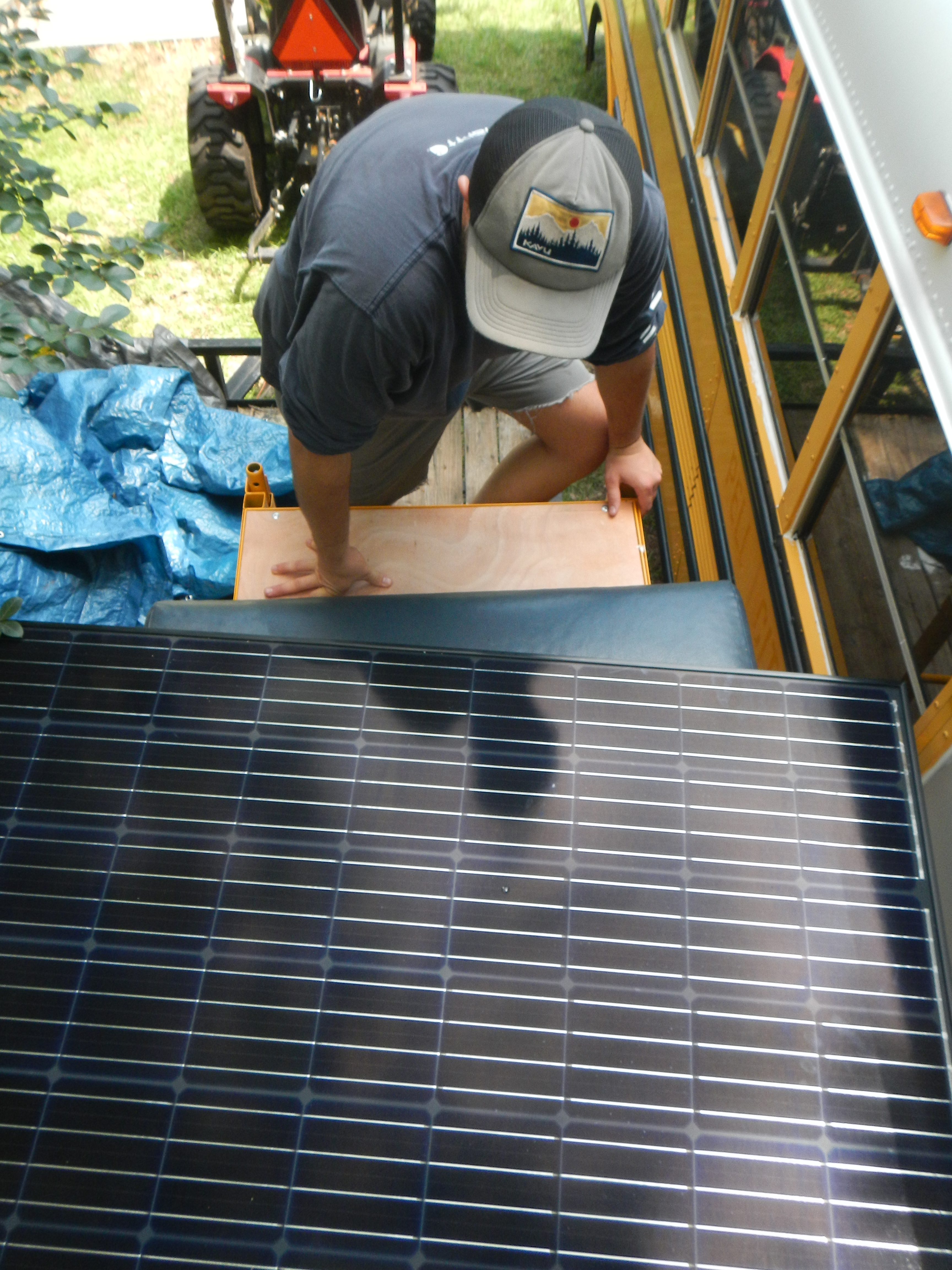 The solar panels are finally installed! Lucas came out this Sunday and together we got the panels secured to the roof and the wiring run to the interior of the bus.