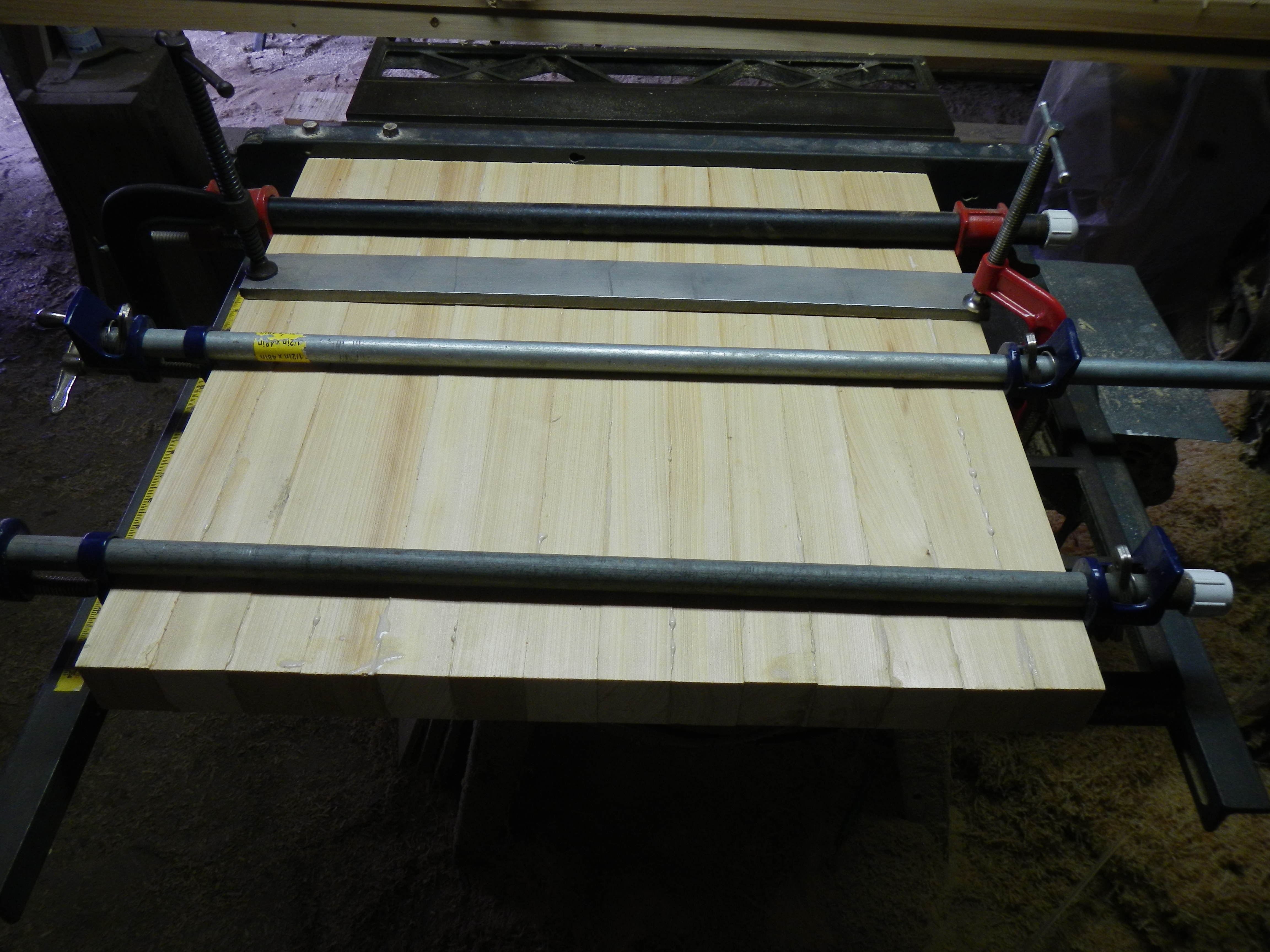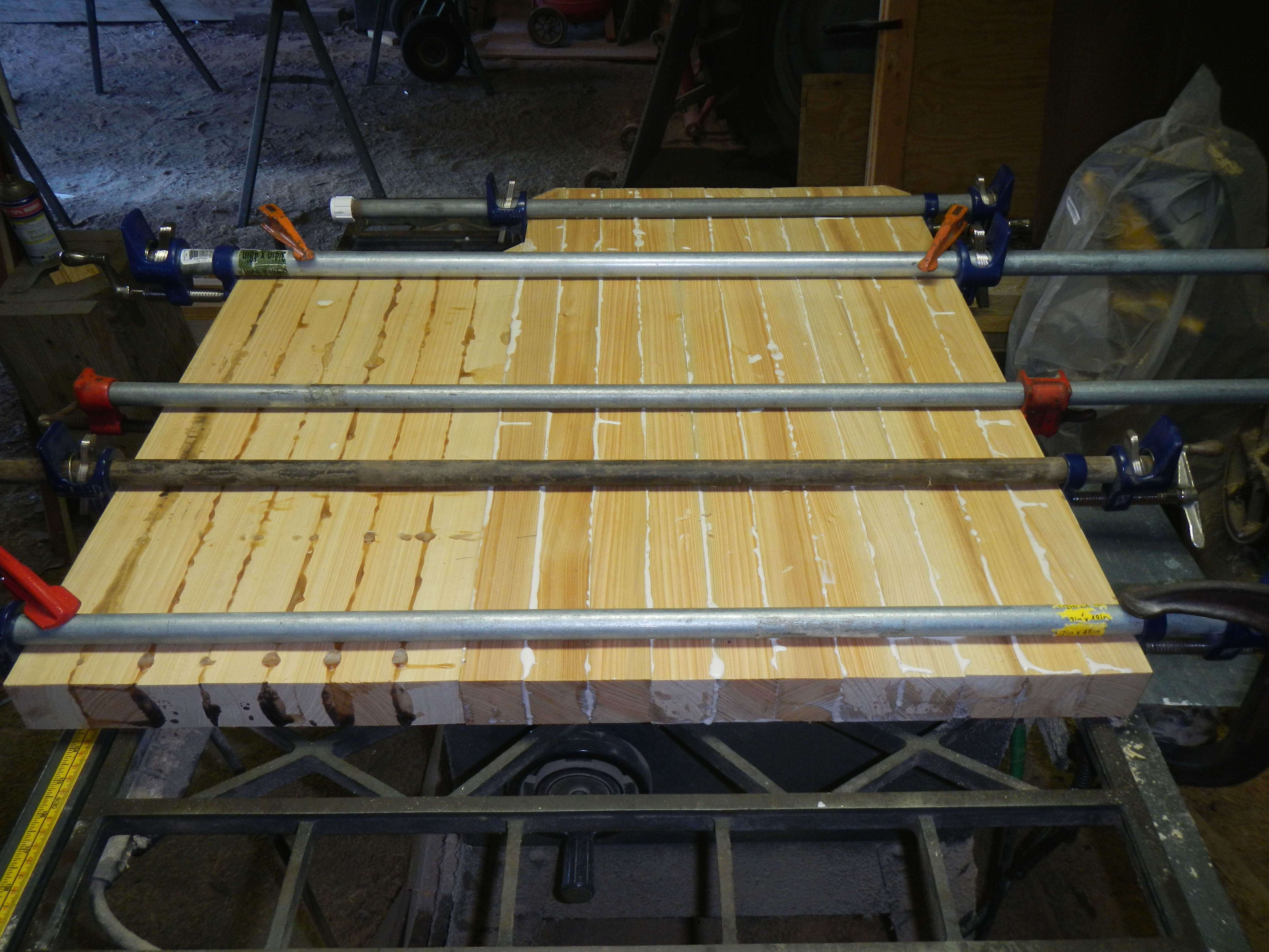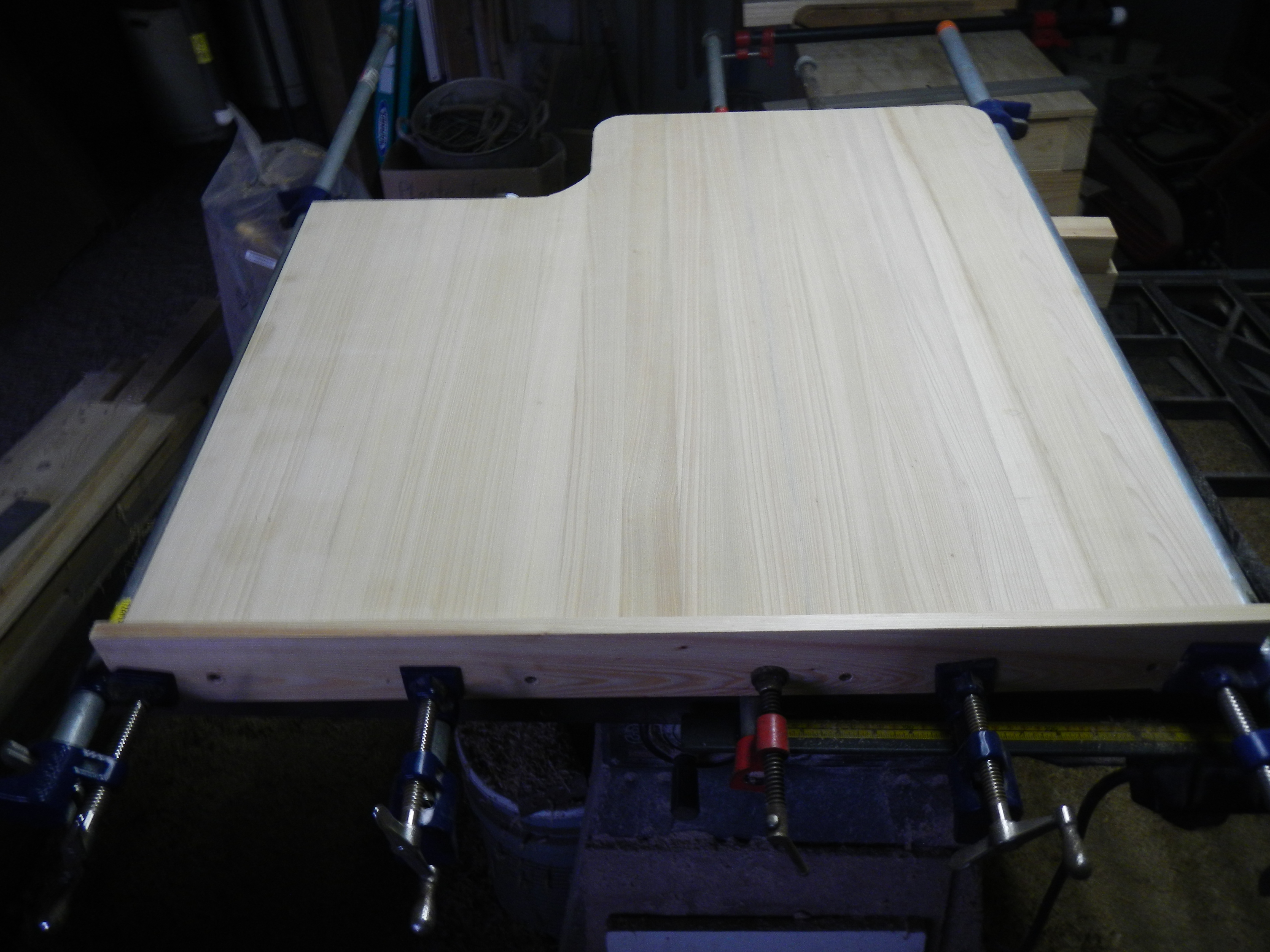 With the counter framed and sink in place, it was time to construct the countertops. After some consideration I decided to use cypress due to its local availability and rot resistance. Cypress is a relatively soft wood, so will be prone to picking up dents and scratches, but I’m finishing it with oil and wax, so dents and scuffs will be relatively easy to deal with and will hopefully just add to “character”.