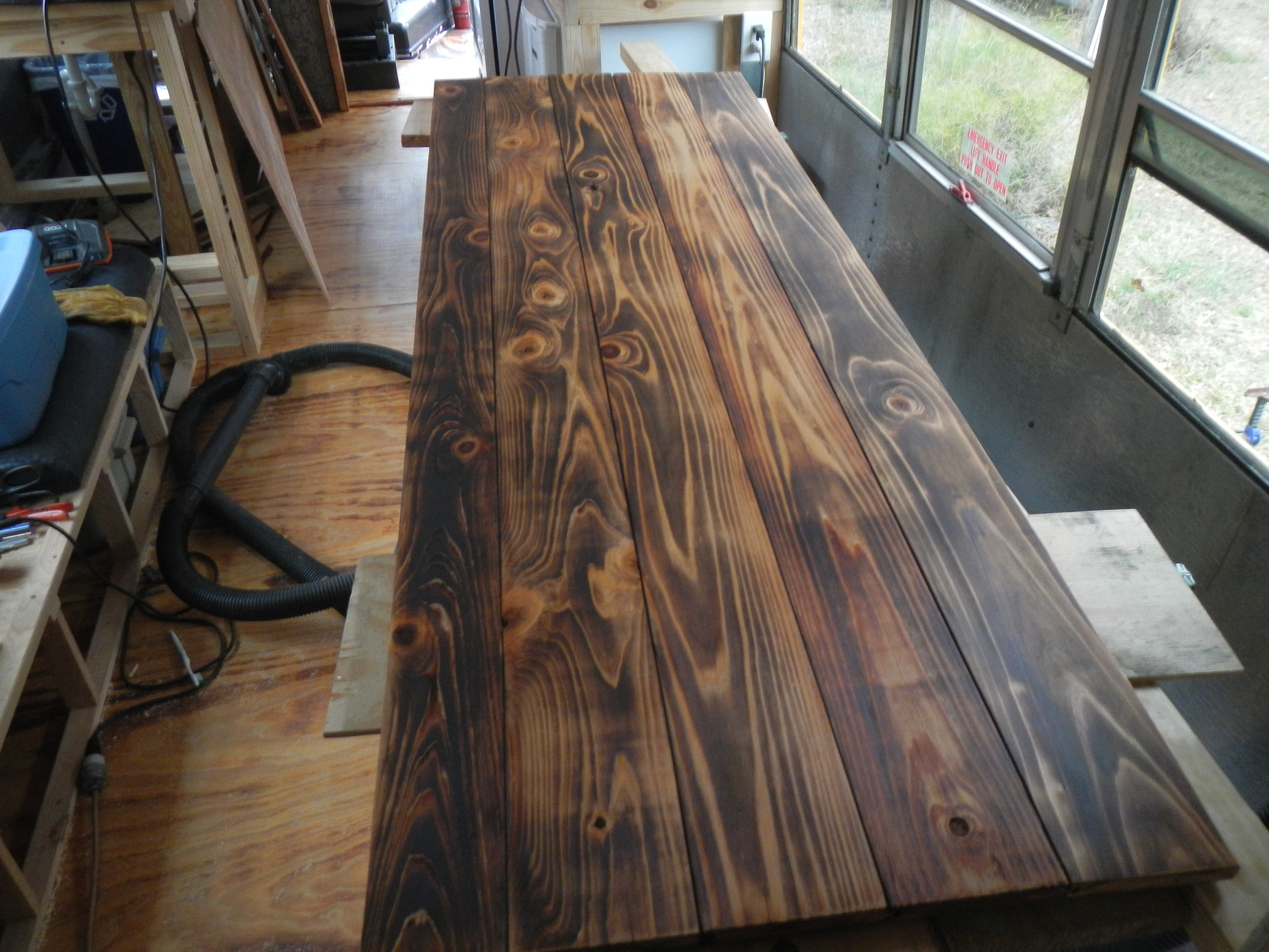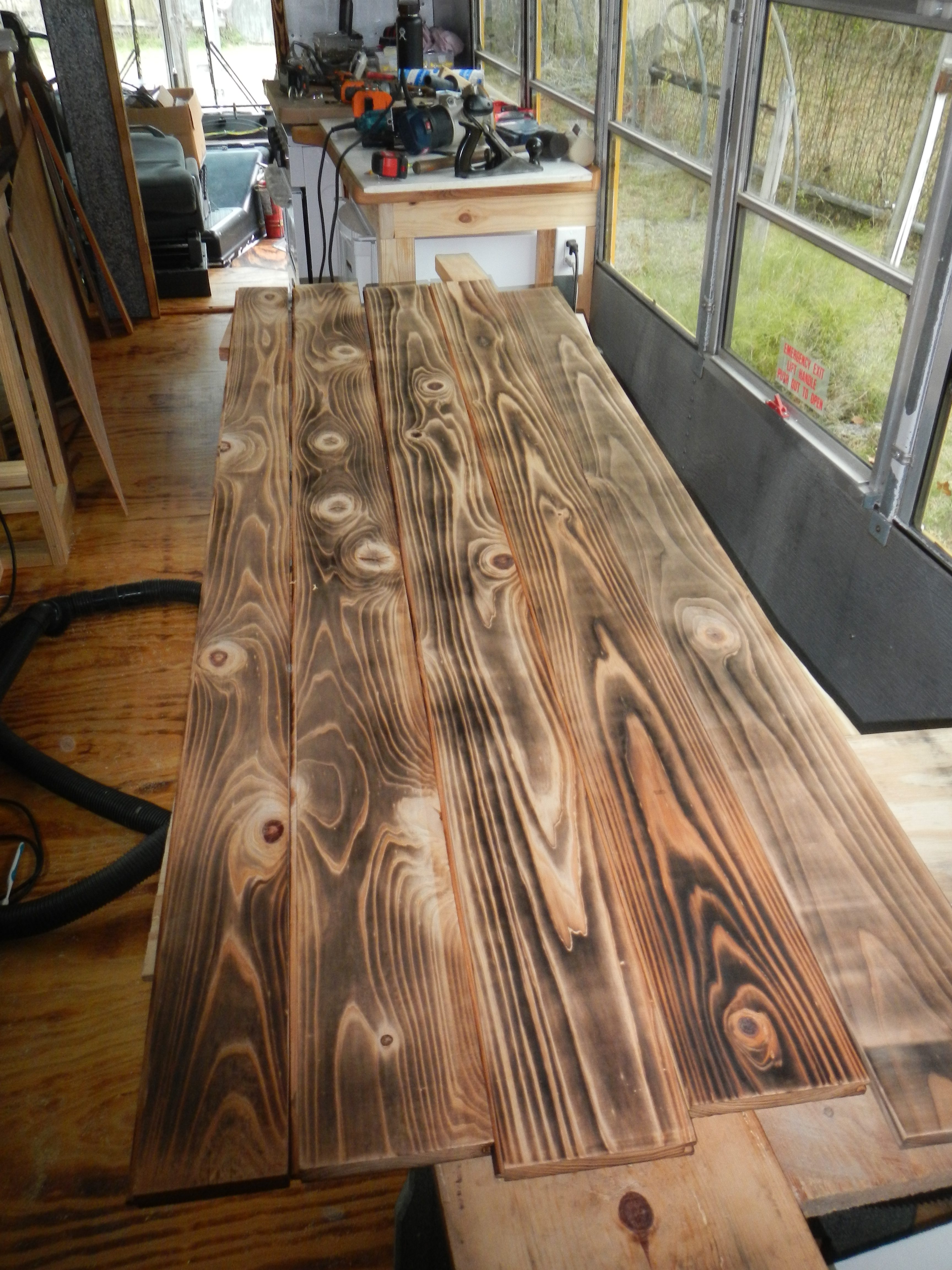 Finishing wood with fire and oil is called Shou Sugi Ban, and is a traditional Japanese method of treating and preserving wood. I’ve got no idea if I’m doing it according to tradition, but I do know that it is the single quickest and most effective (not to mention satisfying) method I’ve found for going from rough lumber to a finished surface.
