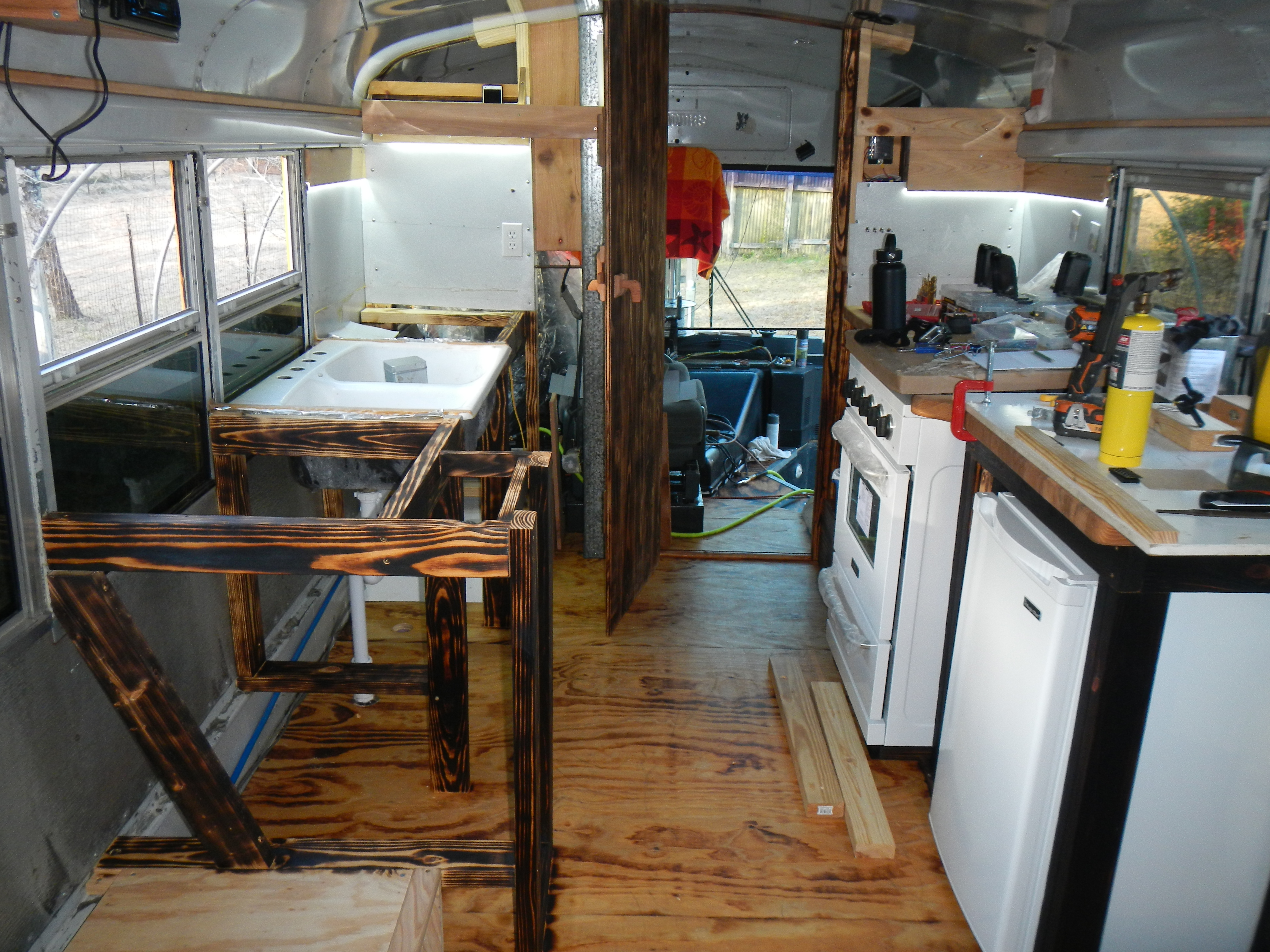 As it was, I spent a lot of time waving a small propane torch around to light the inside of the bus on fire, and slightly less time putting out fires with my hands (its fine, I was wearing gloves, and yes, there was a fire extinguisher nearby and no, I never needed to use it)