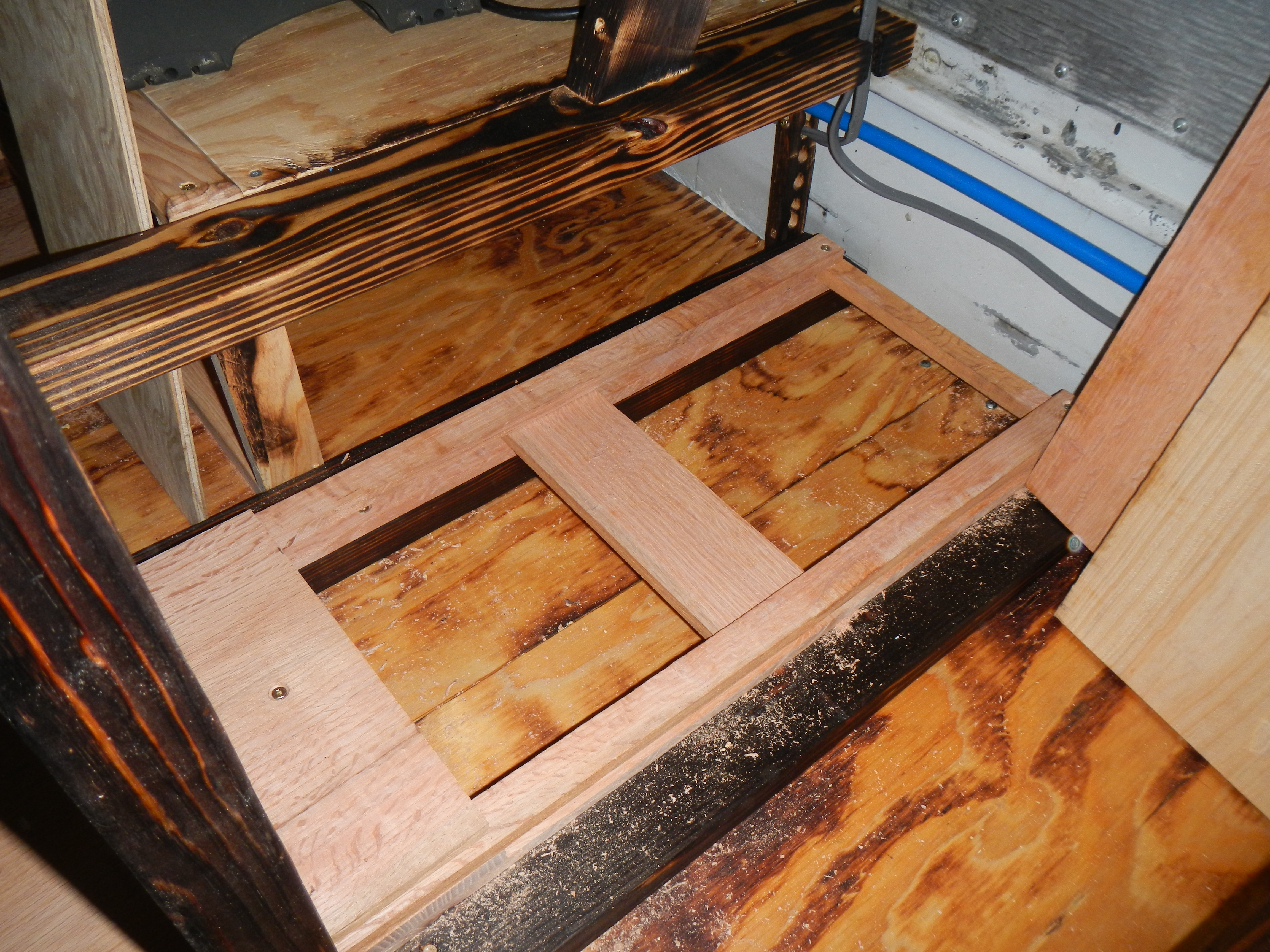 Getting this to fit closely took some time with a hand planer. Note wood shavings scattered about