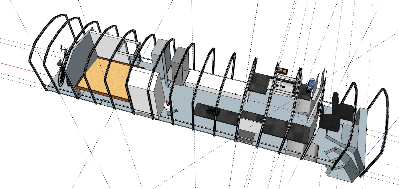 - To be a comfortable living space. This means a well-equipped kitchen, a comfy bed, and the ability to take a hot indoor shower if we really want one